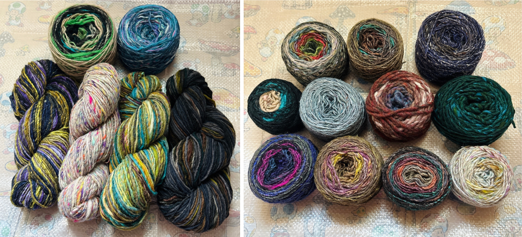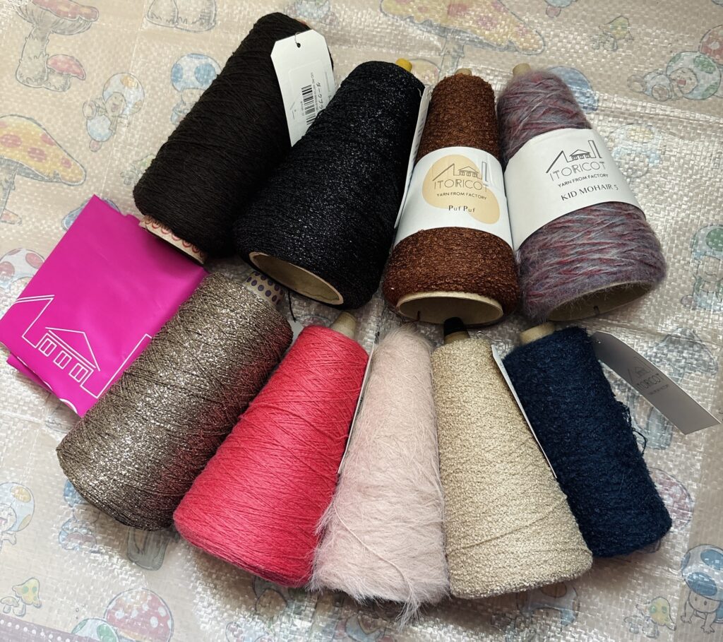 届いた糸は、素材も色も太さも本当にバリエーション豊かで、普段なら自分では選ばないようなものばかり。