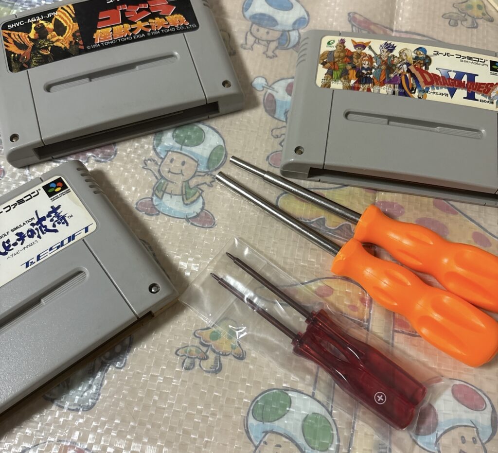 レトロゲームソフトを分解するには、通常のプラスドライバーではなく、専用の特殊ドライバーが必要です。