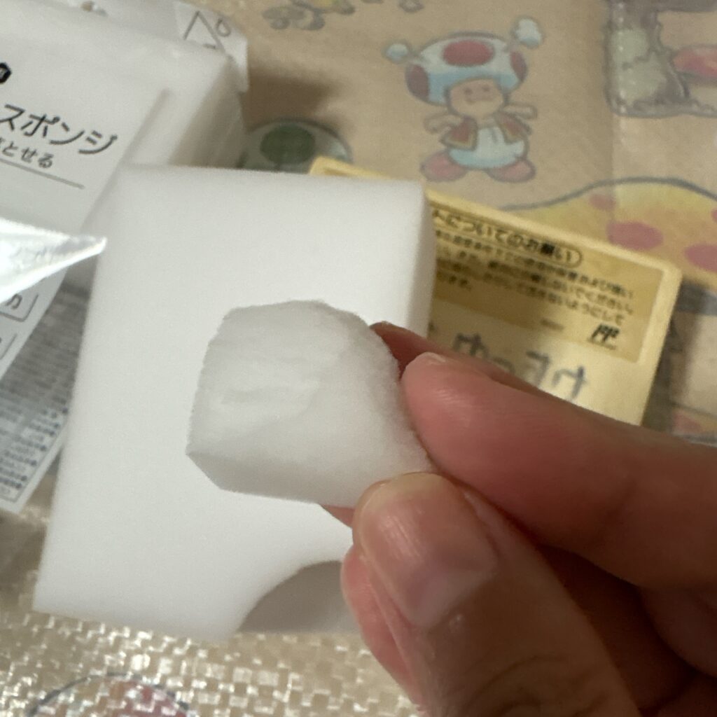 しかし、メラミンスポンジは細かい研磨材のような性質を持っており、汚れそのものを削り落としていることになります。