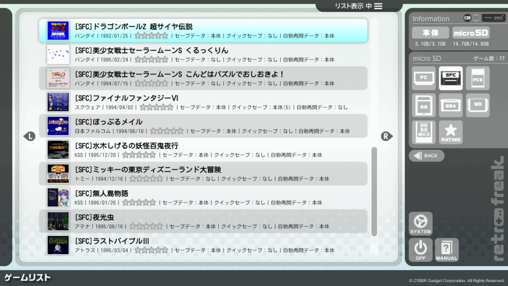 動作に問題のあるゲームリスト|retrofreak Support|CYBER Gadget