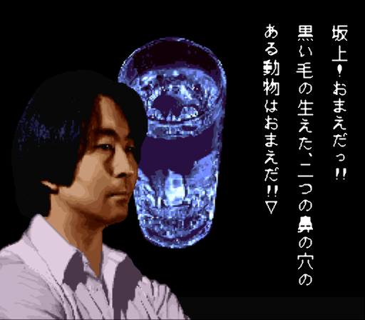 黒い毛と“二つの穴”が見えると言い、「名を呼ばれれば襲う。来たらその穴を狙え」と煽ると、唐突に動物の名として「坂上――お前だ」と宣告。