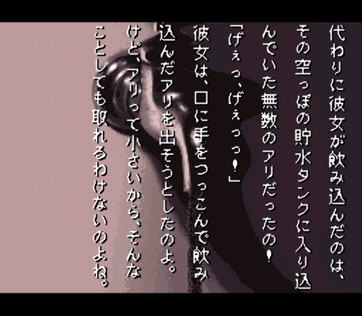 彼女の口に流れ込んだのは水ではなく、空になった貯水タンクから湧き出した無数の蟻。