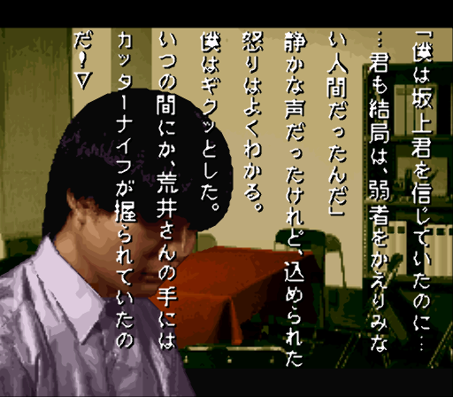 坂上(主人公)がどちらの味方をするか選択を迫られ、風間を庇ったことで荒井は完全に裏切られたと感じる。