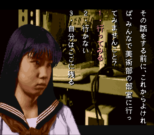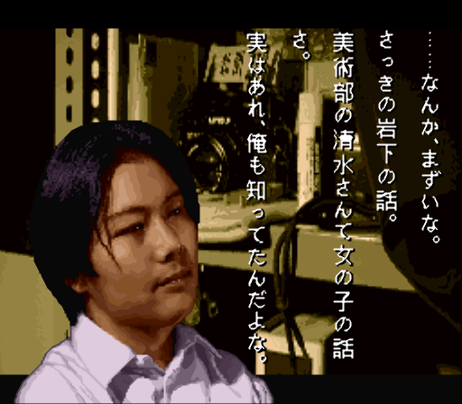 新堂誠は、清水という女子生徒と呪われた絵の噂を知っていると語り、主人公・坂上が美術室で“あの顔”を見たかどうかを執拗に探ろうとする。