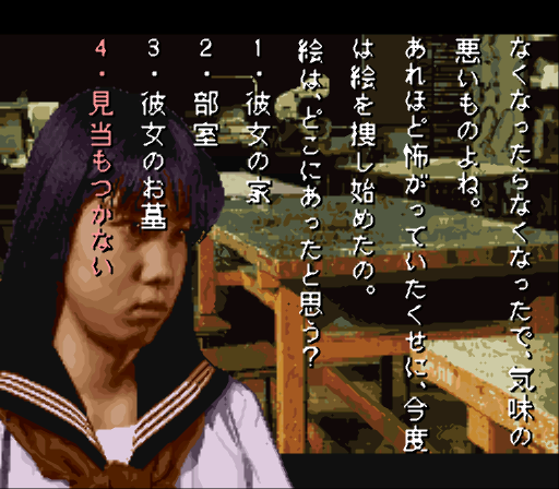 清水智子の自画像の在処を「殺人現場(“見当もつかない”と選択)」と選択したことで、血生臭い話に変貌しました。