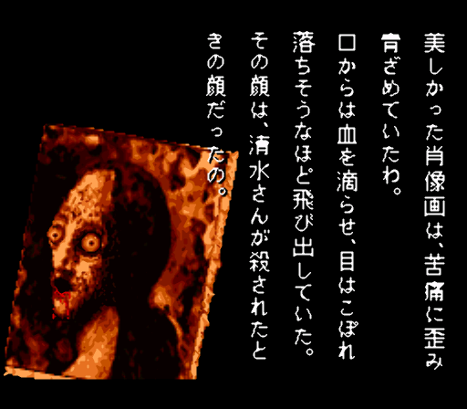 やがて肖像画は完成するが、その後、清水が殺害された現場で発見された同じ絵は、彼女が死の間際に浮かべていたであろう苦悶の表情へと変貌していた。