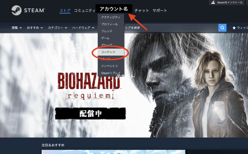 - PCでSteam起動(ブラウザでも)