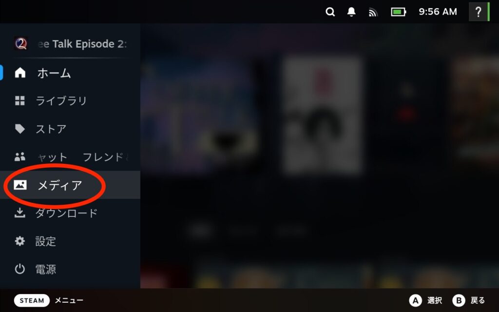 - STEAMボタン→「メディア」を開く