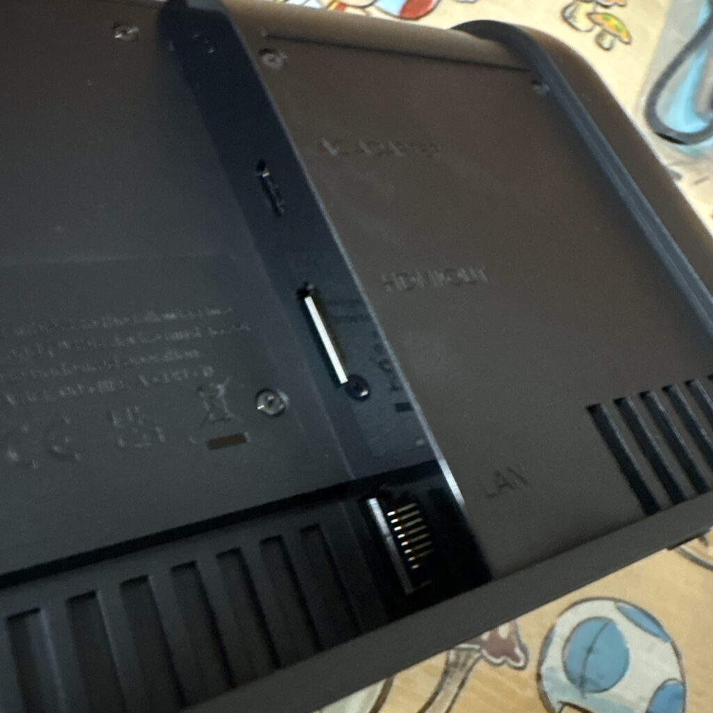 次に、ドッグの裏面のカバーを外して、ACアダプタとウルトラハイスピードHDMIケーブル(付属品)挿して、Joy-Con2を外した本体をドッグにセットします。
