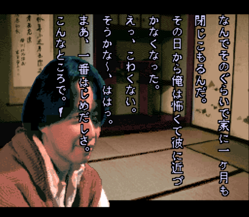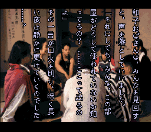 祖母の法要に集まった親戚6人から怪談を聞いていく、サウンドノベル形式の作品となっています。