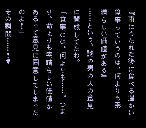 話が終わりに近づいた頃、葉子に「男に出会ったのは錯覚じゃないと思う」と言われた哲夫は異様に喜び、一緒に冒険しようと熱く誘い始めたのだった。